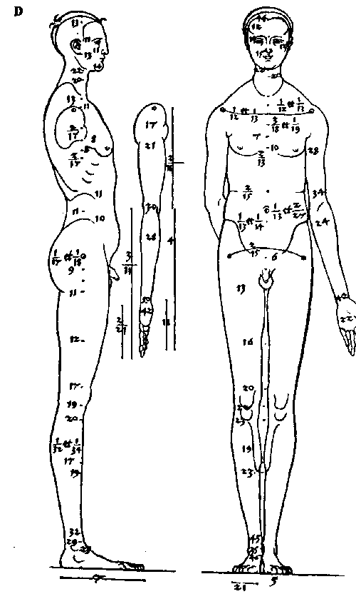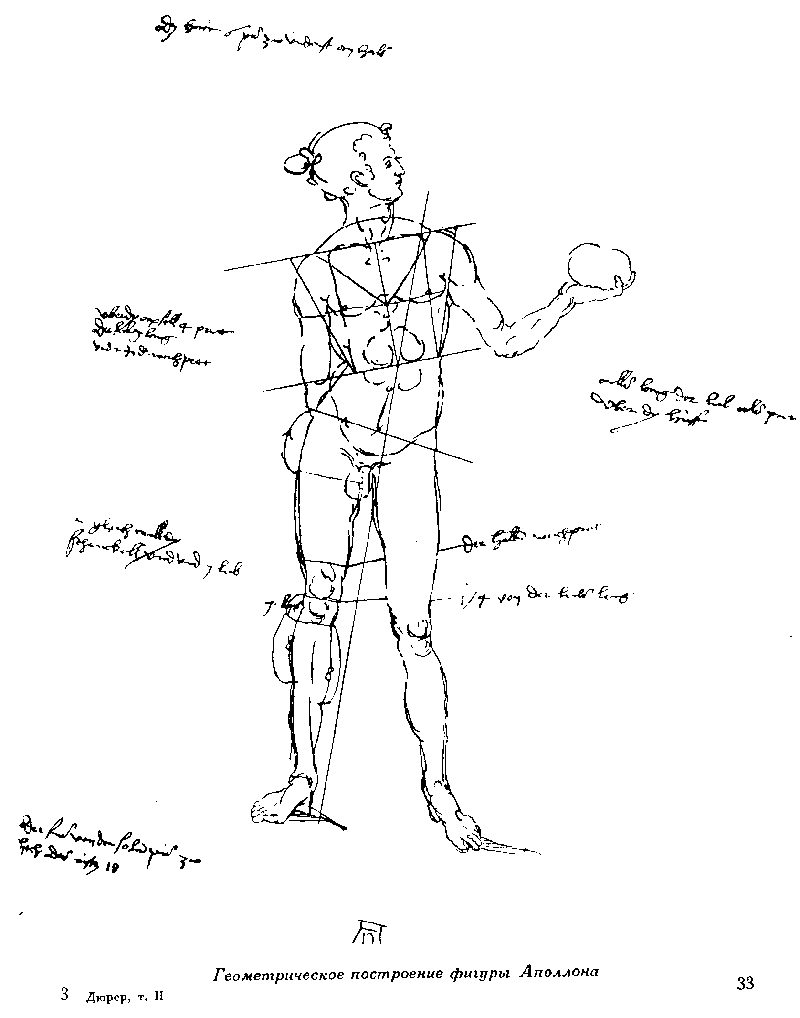 8. Мужская фигура, вписанная в квадрат. Рисунок пером. Дрезден, Публичная библиотека.