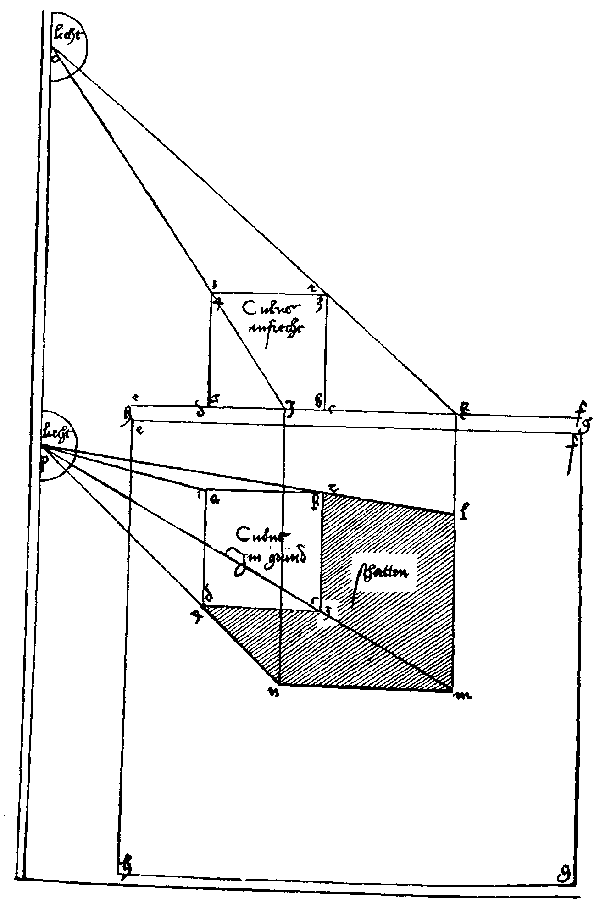 43. Чертеж, показывающий кажущееся изменение формы и величины предметов в перспективе.