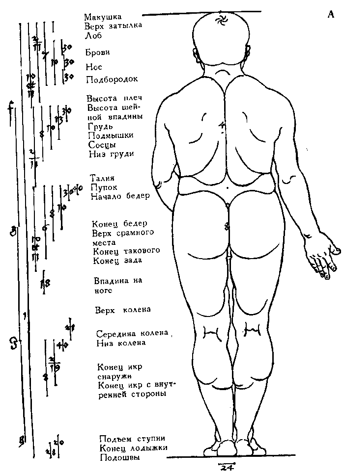 65. Мужская фигура высотою в десять голов. Вид сзади.