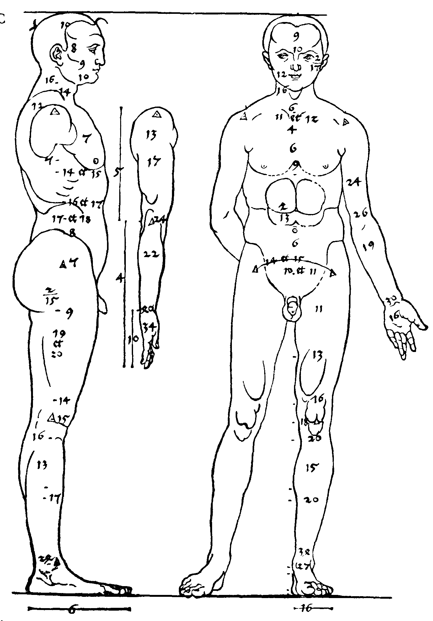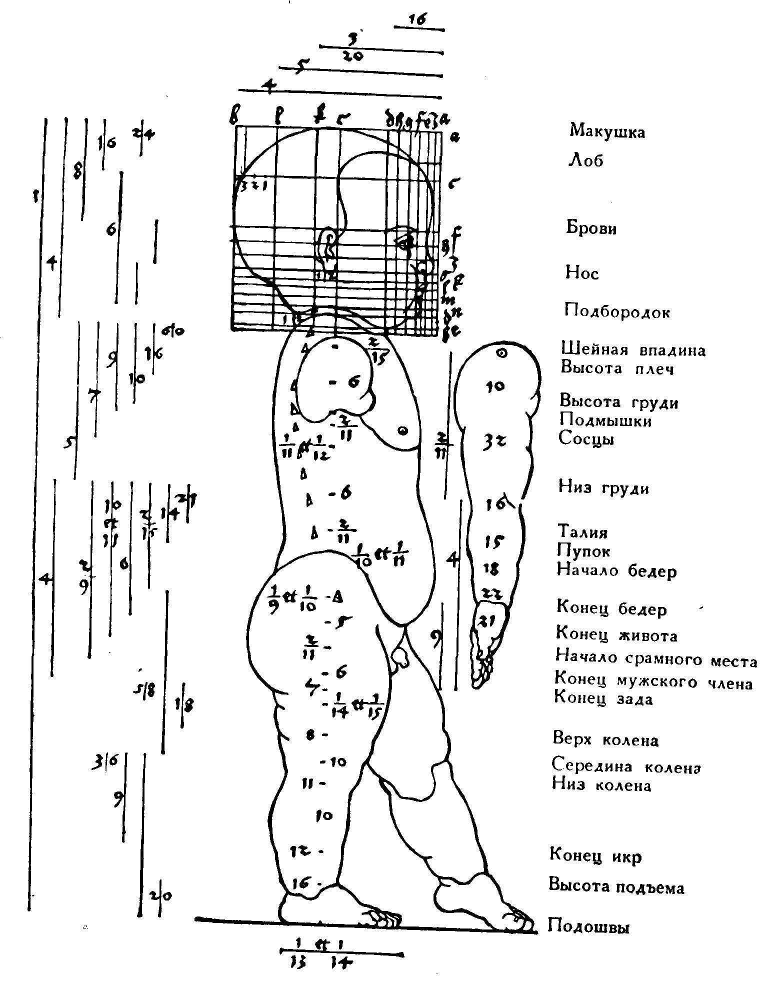 58. Фигура плотного мужчины высотою в семь голов. Вид спереди.