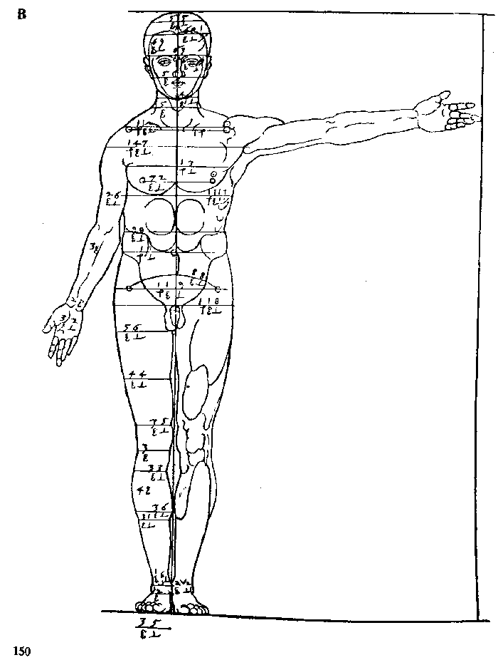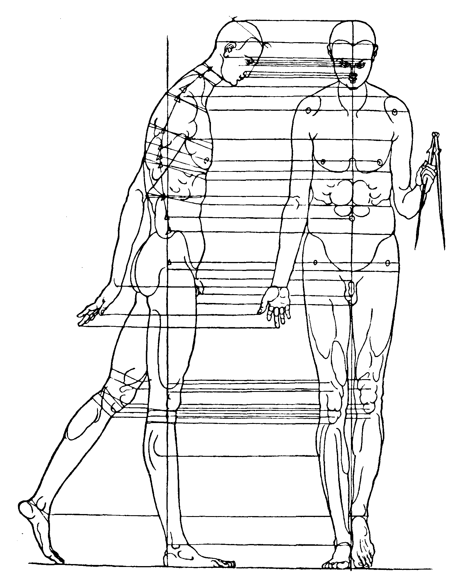 64. Мужская фигура высотою в десять голов. Вид спереди.