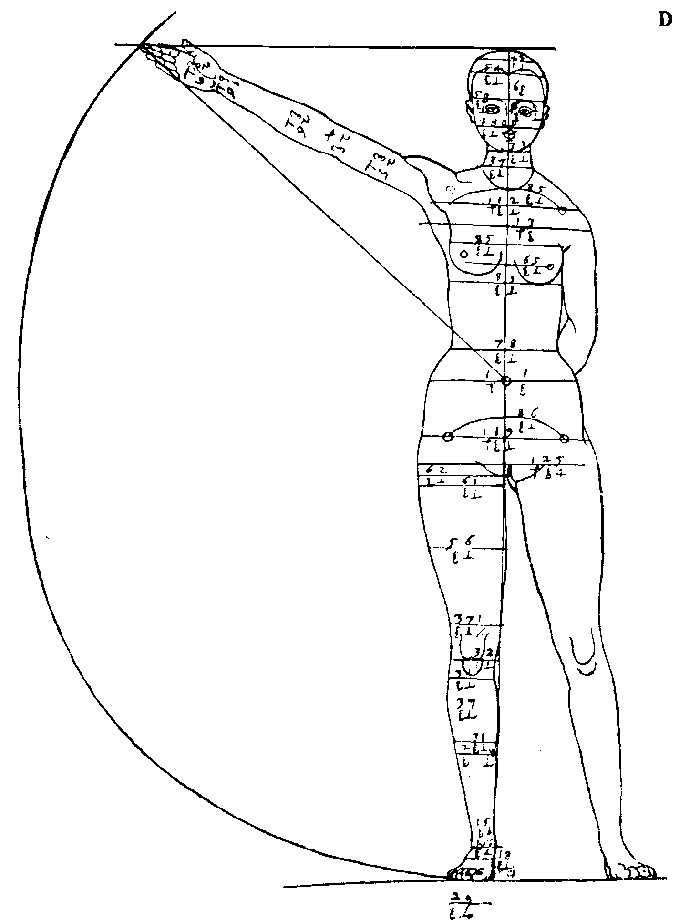 6. Построение женской фигуры при помощи циркуля. Рисунок пером. Дрезден, Публичная библиотека.