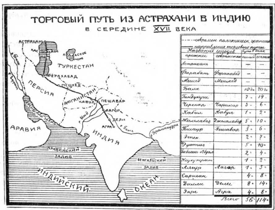 Роспись торгового пути из Астрахани в Индию в середине XVII века.