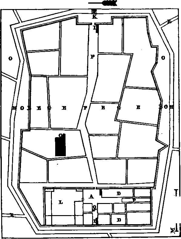 Вот план Хивы, снятый инженером Назимовым в 1740 году, с объяснениями, какие находятся на подлинном плане: [38]