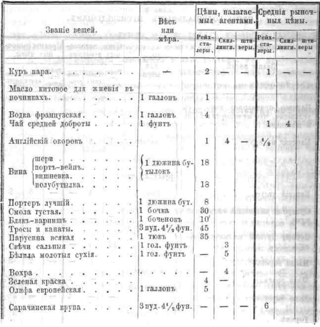 Произведения колонии, нужные мореплавателям; обманы, употребляемые купцами при снабжении судов; средства с выгодою запасаться всем нужным, не имея помощи в агентах, и цены съестных припасов и вещей.