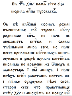 Текст воспроизведен по изданию: Проложное житие Кирилла, епископа Туровского // Палеоросия. Древняя Русь: во времени, в личностях, в идеях. Научный журнал Санкт-Петербургской Духовной Академии, № 6 (15). 2016