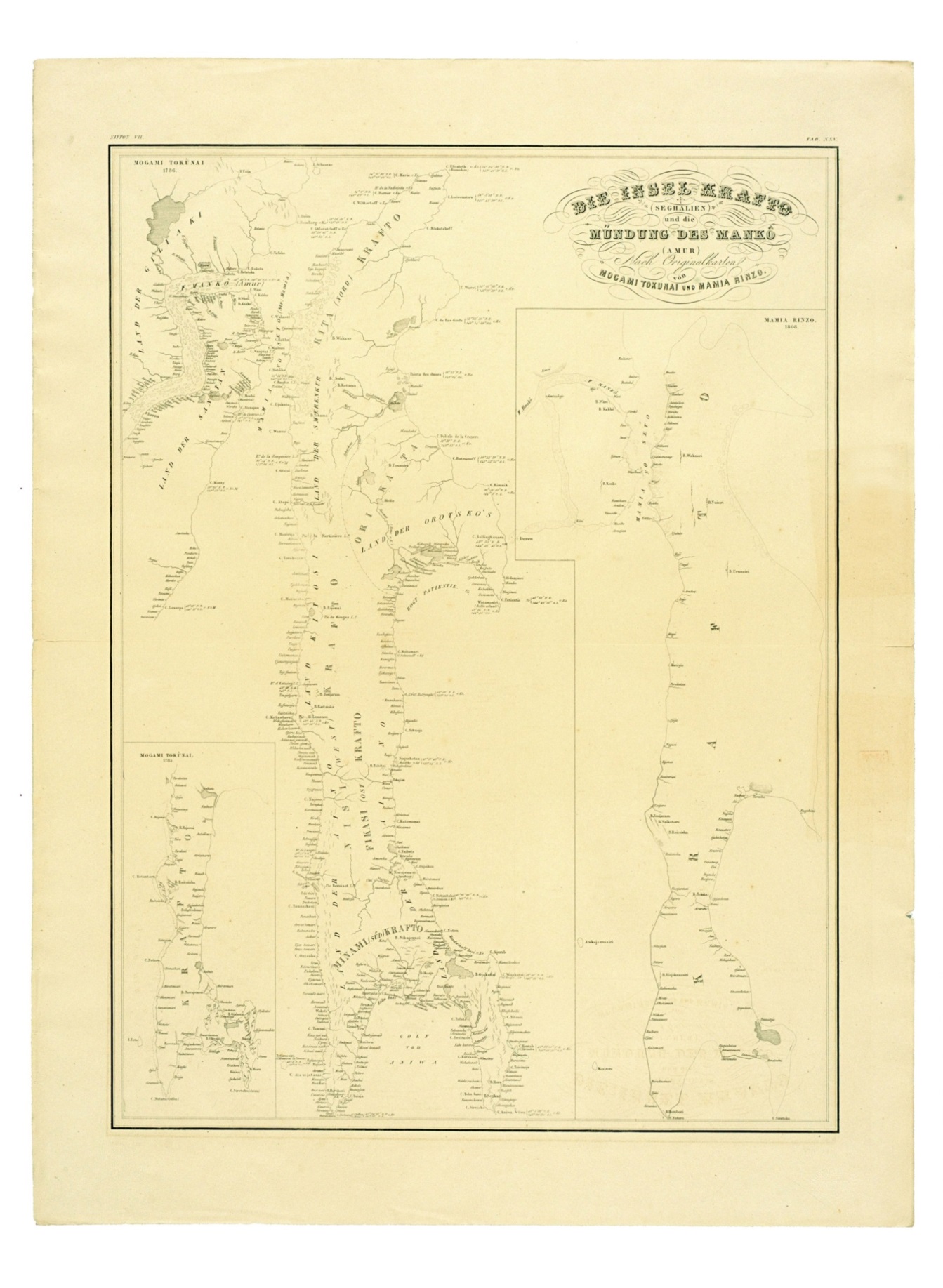 Карта «Die Insel Krafto (Seghalien) und die Mundung des Manko (Amur) Nach Originalkarten von Mogami Tokunai und Mamia Rinzo», «Nippon» VII, Tab. XXV