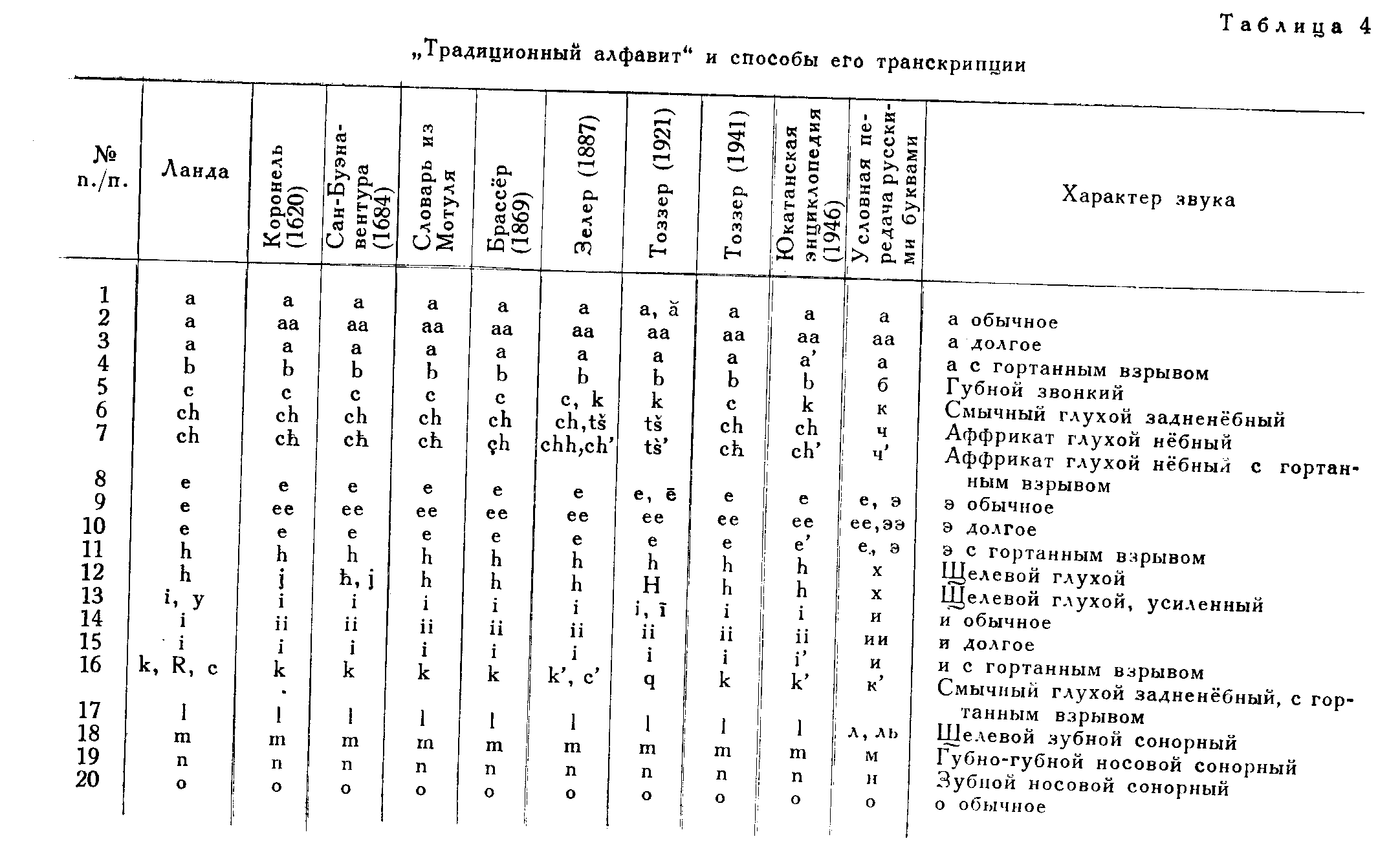 Примечание. 4 столбца слева указывают числа 20-дневных месяцев; 13 столбцов цифр справа указывают числа 13-дневной неделе