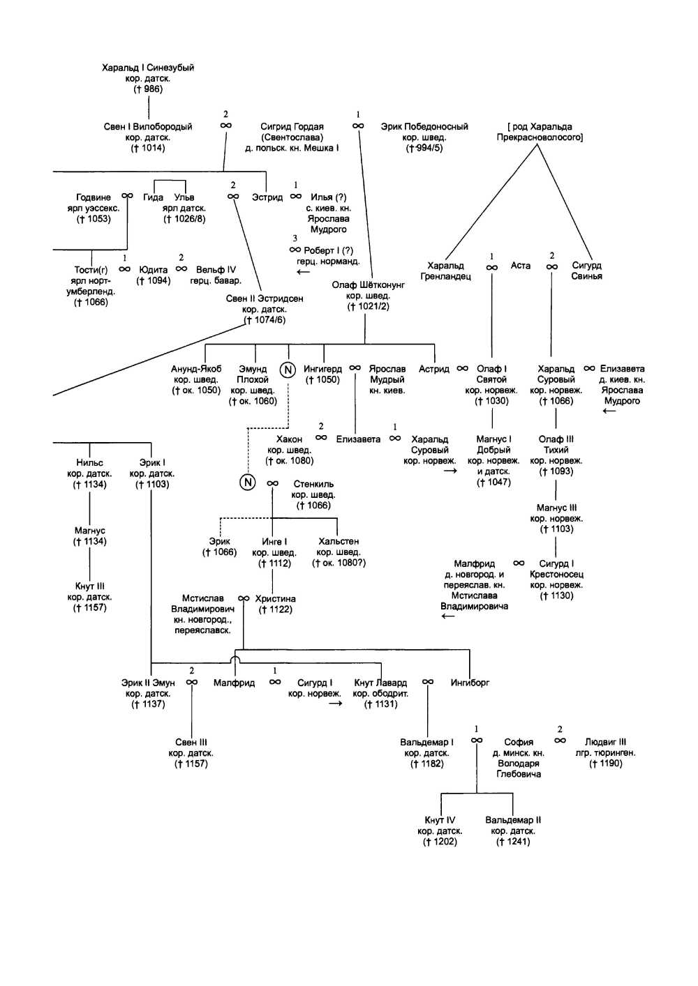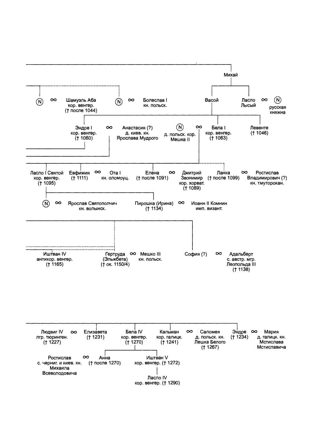 Таблицы призваны облегчить читателю ориентацию в том обширном просопографическом материале, который содержится в томе, по возможности суммировав его и представив в систематическом виде взаимоувязанных родословий. Это потребовало, естественно, включения целого ряда имен, в текстах и комментариях не упоминающихся, но без которых генеалогия утратила бы связность. Кроме того, составитель позволил себе пополнить таблицы также изрядным количеством лиц, династически связанных с древнерусским княжеским домом, хотя в тексте эти связи и не обсуждаются. Поэтому таблицы представляют собой не только вспомогательную часть тома, но и несут самостоятельную, отдельную информацию. Вместе с тем, от приведенных генеалогий, разумеется, никоим образом не следует ждать исчерпывающей полноты. За их пределами остались имена многих исторически более или менее важных персонажей, если их присутствие не диктовалось названными выше потребностями; исключение составляют некоторые общеизвестные имена, которые дают читателю возможность привязать родословие к исторически маркирующим фигурам — Карлу Великому, Александру Невскому, Пржемыслу-Отакару I и т. п. В результате родословия страдают порой досадной, но неизбежной избирательностью, предъявляя имена незначительные (коль скоро они фигурируют в тексте) и опуская исторически куда более весомые (но в тексте не встречающиеся). Читателю придется смириться с этим, как смирился составитель.