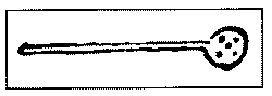 Шаман, который знатнее, держит в правой руке конский хвост, которым он по ходу дела производит жесты. Он также пропевает /л. 209 об./ перед жертвоприношением слова, которые другой шаман повторяет и при этом инструментом следующей формы:
