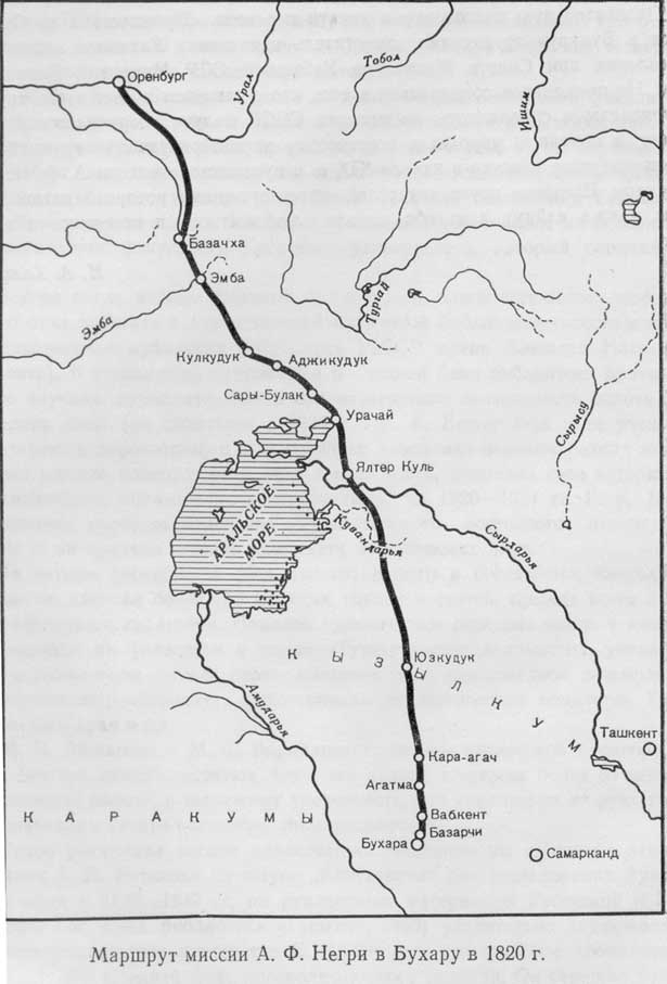 Маршрут миссии А.Ф. Негри в Бухару в 1820 г. (50 кб.)