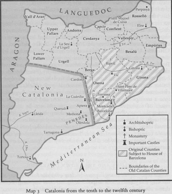 Каталония c X по XII вв. (61 кб). Источник: S. Bench. Barcelona and its rulers 1096 - 1291. 1994