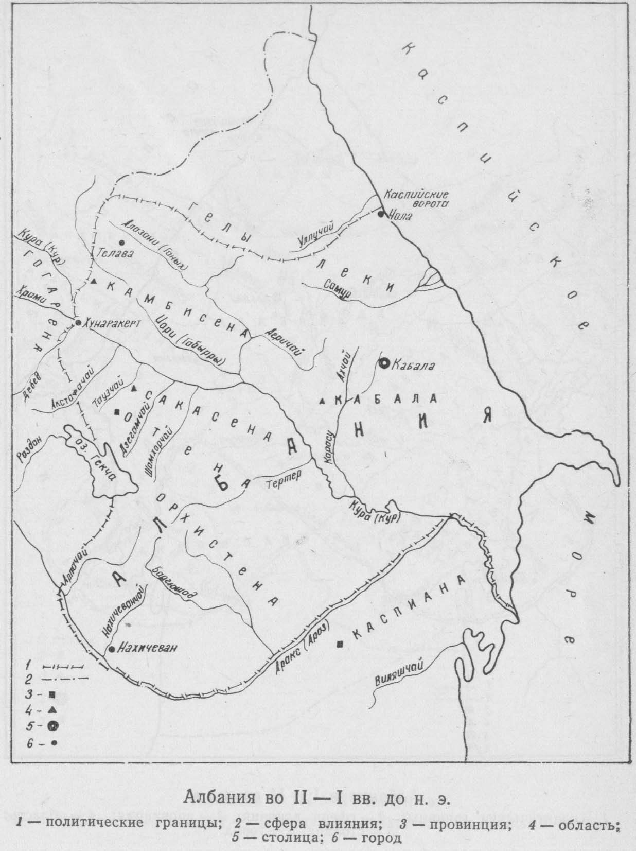 Албания в II - I вв. до н.э. (136 кб). Источник: Историческая география Азербайджана Баку. 1987