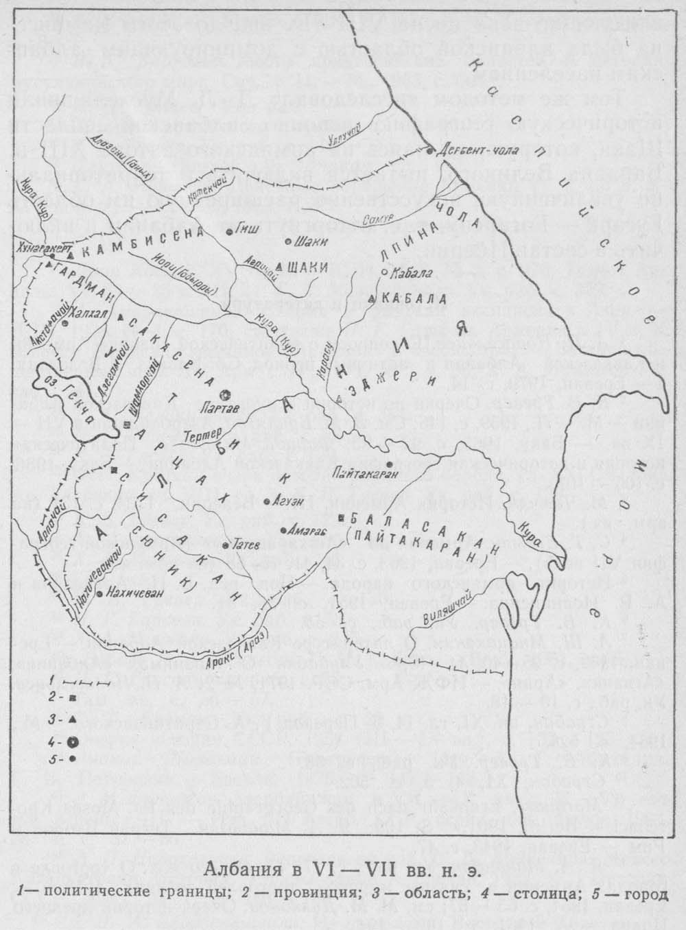 Албания в V вв. н.э. (92 кб). Источник: Историческая география Азербайджана Баку. 1987