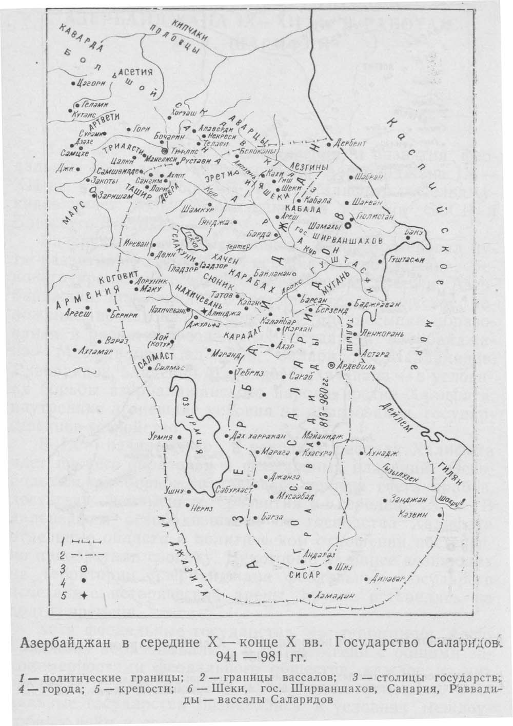 Азербайджан во второй половине IX - X вв. (164 кб). Источник: Историческая география Азербайджана Баку. 1987