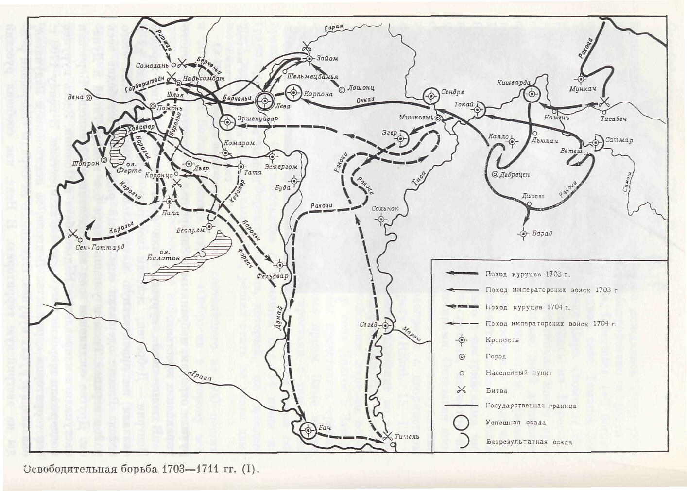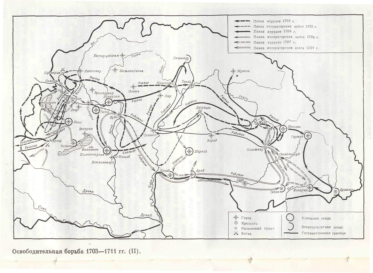 Движение куруцев 1703-1711 гг. (II) (208 кб). Источник: История Венгрии. М. 1971. (Любезно предоставлена Дьяконовым И. В.)